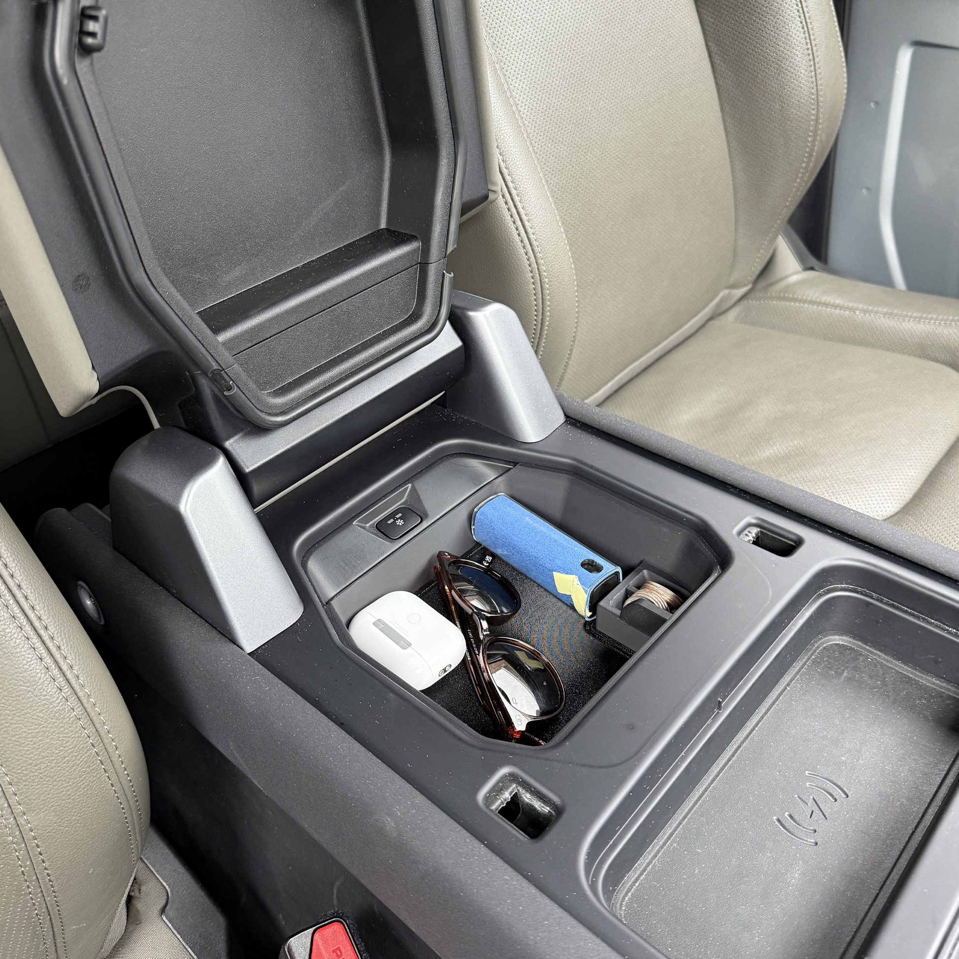 The newest Defenders are great, but they could use some help when it comes to hidden or stealth storage. Utilize the extra space in your armrest compartment to store small items while keeping the deeper bin useful.